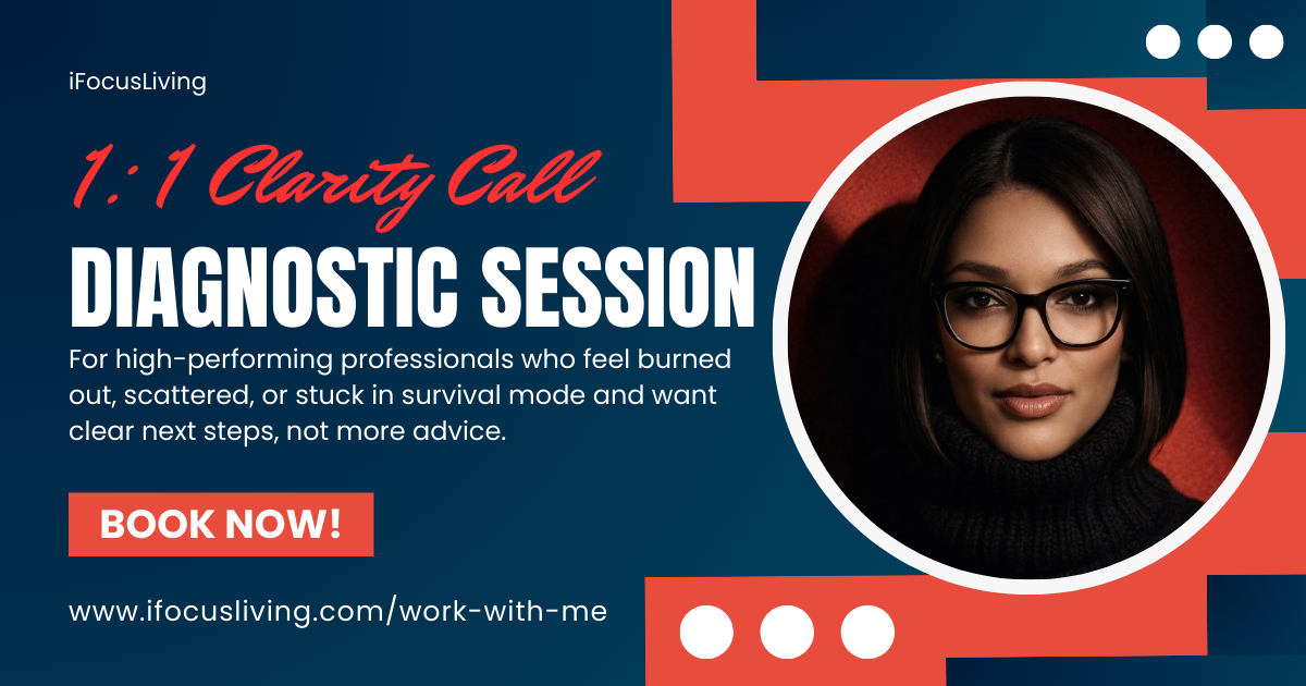 For high-performing professionals who feel burned out, scattered, or stuck in survival mode and want clear next steps, not more advice.